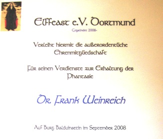 Begründet wurde dies mit meinem Engagement für das Fantasygenre, das ich in einer Vielzahl von Publikationen und Vorträgen erkläre, interpretiere und gegen Angriffe verteidige.