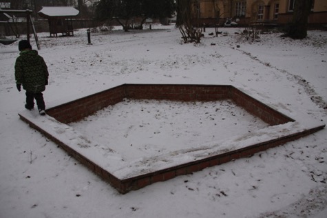 Nachmittags war ich auf seinen Wunsch hin mit meinem Sohn in seinem Kindergarten, wo natürlich niemand war. Dabei entstanden in leichtem Schneetreiben und bei tiefhängendem Himmel (Jacques Brel hätte seine Freude daran gehabt) melancholische Aufnahmen vom Kindergartengelände.