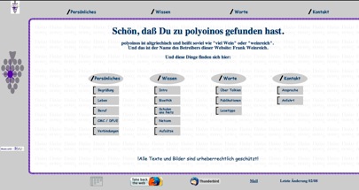 1999 wollte ich dann auch im Netz mitmischen und habe anlässlich der ersten zehn Tolkien-Aufsätze die Version 1.0 von polyoinos ins Netz gestellt, vielleicht erinnern Sie sich ja noch, sie stand schließlich fast zehn Jahre hier: