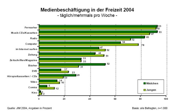 Medienpädagogischer Forschungsverbund Südwest (Hrsg.) (2004): JIM-Studie 2004. Jugend, Information, (Multi-)Media. Basisuntersuchung zum Medienumgang 12- bis 19-Jähriger. [WWW-Dokument, URL: www.mpfs.de]