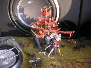 (Die Bilder entstammen einem auf phantastische Weise zu einem Herr-der-Ringe-Diorama ausgebauten Auto, das ich 2007 auf der RingCon in Fulda fotografieren konnte.)