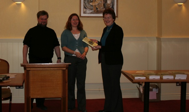 Tolkien´s Shorter Works are given to Claire Chinnery, librarian of Peterborough Regional College, after the lectures were held